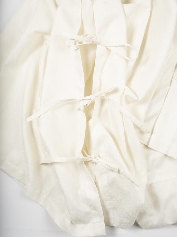 脇開きになっており、紐を結ぶことで開閉可能な仕様になっております。