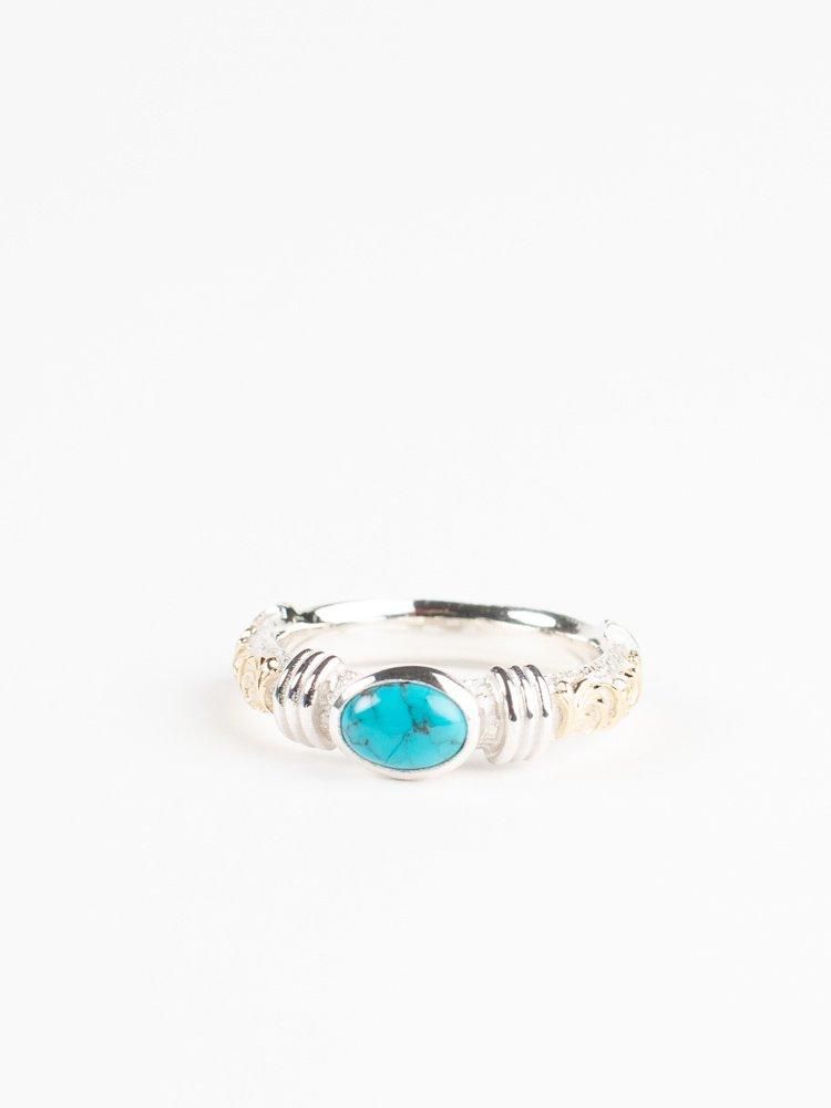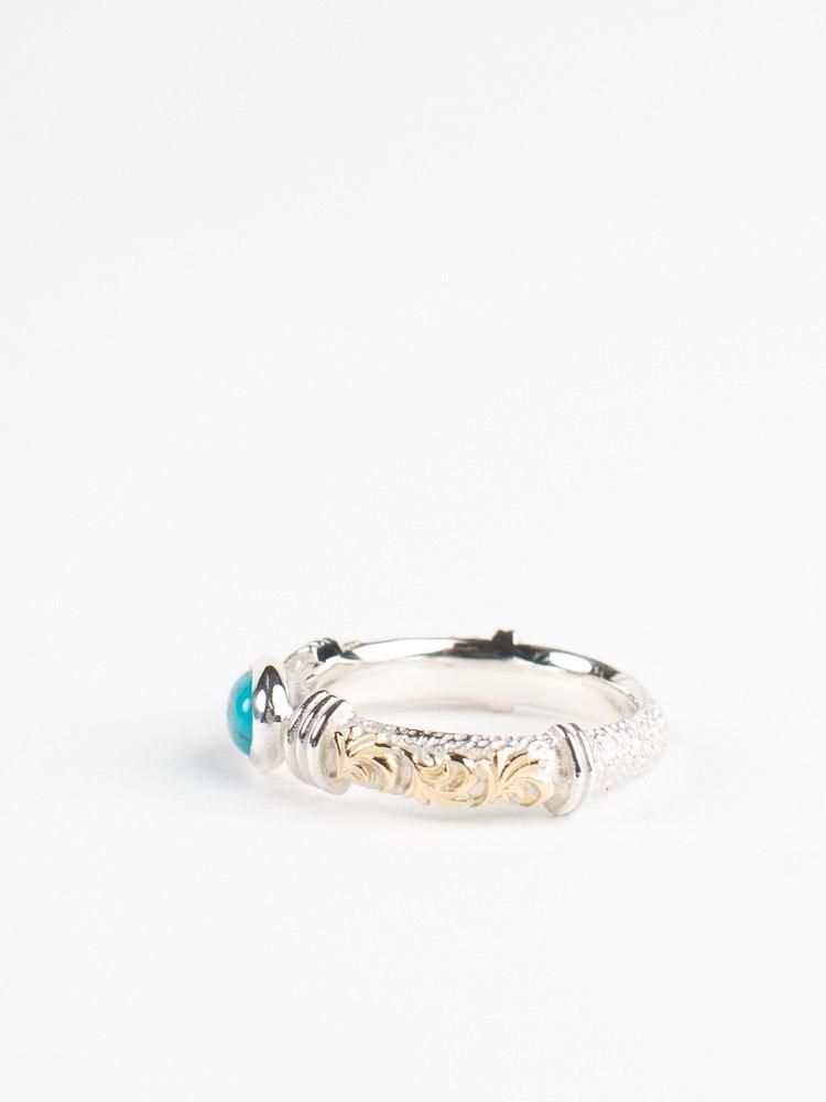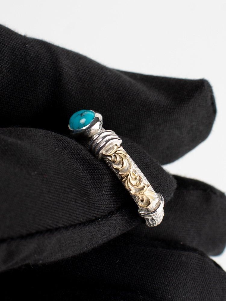 Legend(レジェンド)らしい唐草がサイドに施され、センターにターコイズがセットされたリングになります。