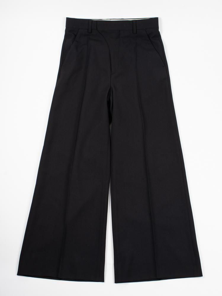 ノータックのウエストまわりがフィットし、裾に向けてメリハリのあるボリュームを持たせたバギーモデル。