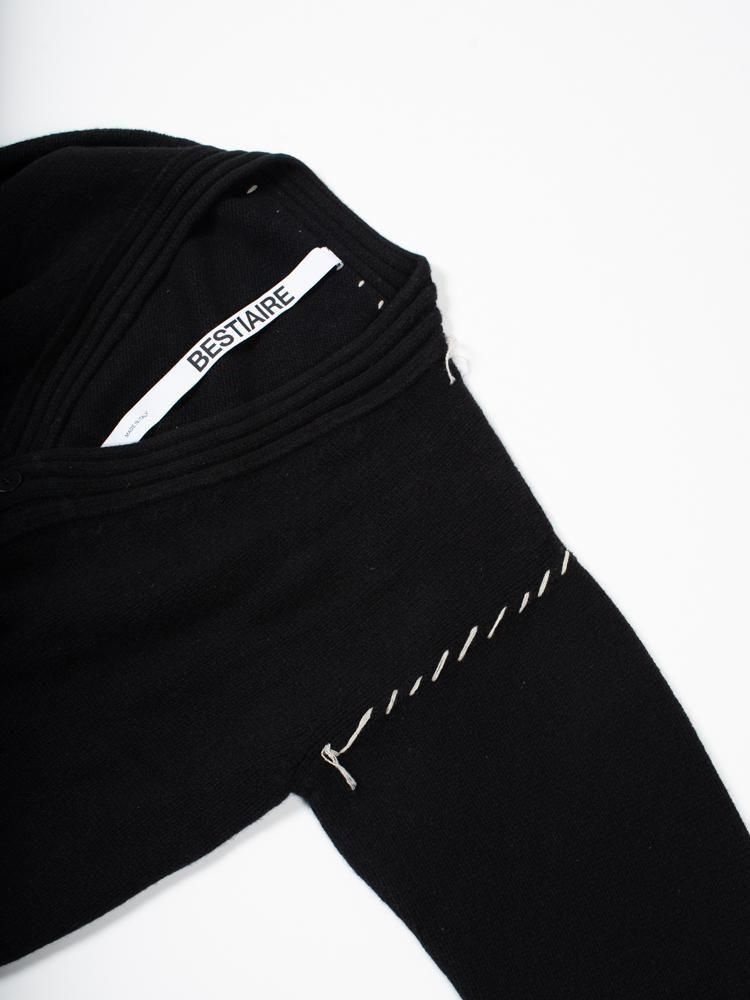 ブランドコンセプト:BESTIAIRE(ベスティエ)、その名は中世の動物の美徳や物語を伝える書物から着想を得て、2021年にイタリアとオランダの間で設立されたデザインアトリエです。彼らはすべての人の物語を身にまとうことを目指し、ノンバイナリーで流動的なアイテ ムを作成しており、コレクションは、イタリアのウンブリアで丹念に製造され、大胆なシルエット、シンプルなデザイン、そして細部へのこだわりが特徴です。天然のオーガニック繊維で作られ、コットンやウール、リネンなど、イタリアのテキスタイルメーカーから厳選された素材が用いられています。