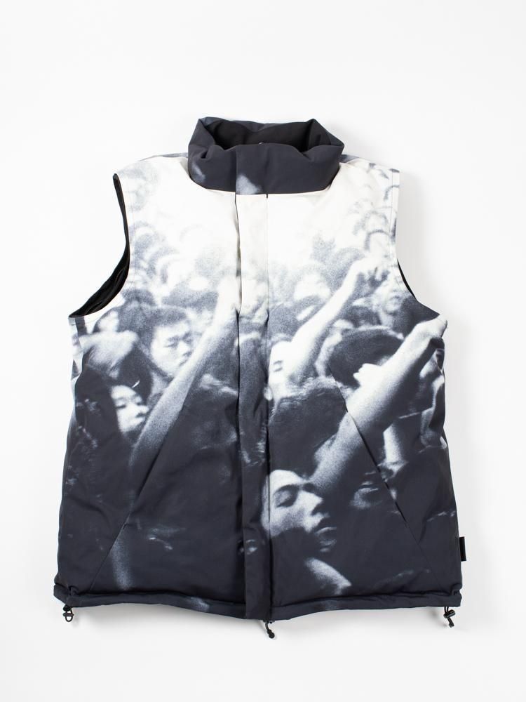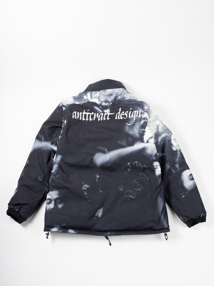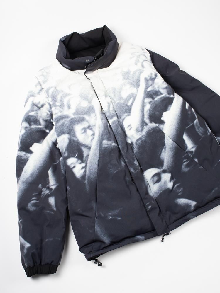 デザイナー解説:1995年8月26日に代々木公園野外ステージで行われた伝説的フリーライブ「Are You Happy?」での熱狂するオーディエンスを見頃全面に配したダウンジャケット。