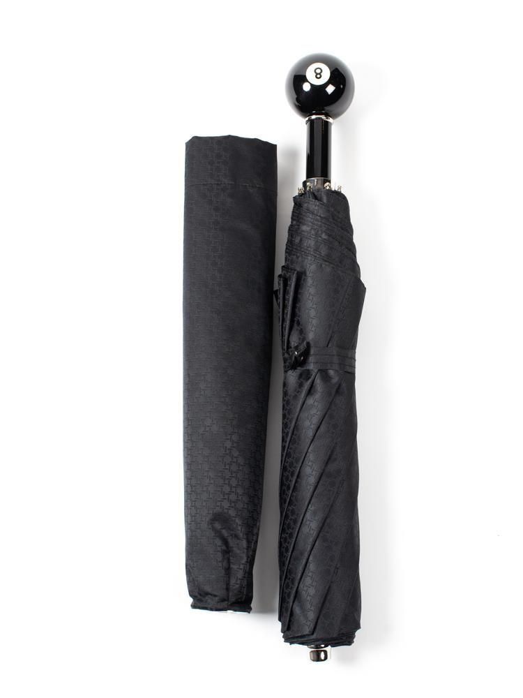 持ち手部分がビリヤードの8ボールになっているデザイン性の高い折りたたみ傘です。