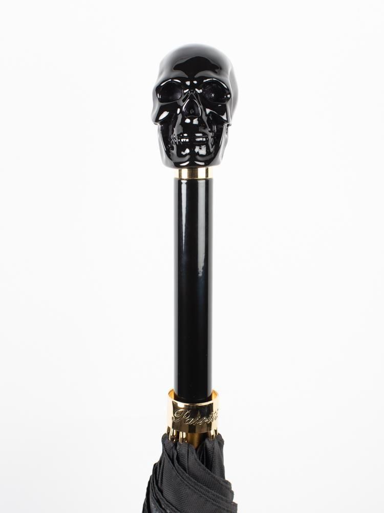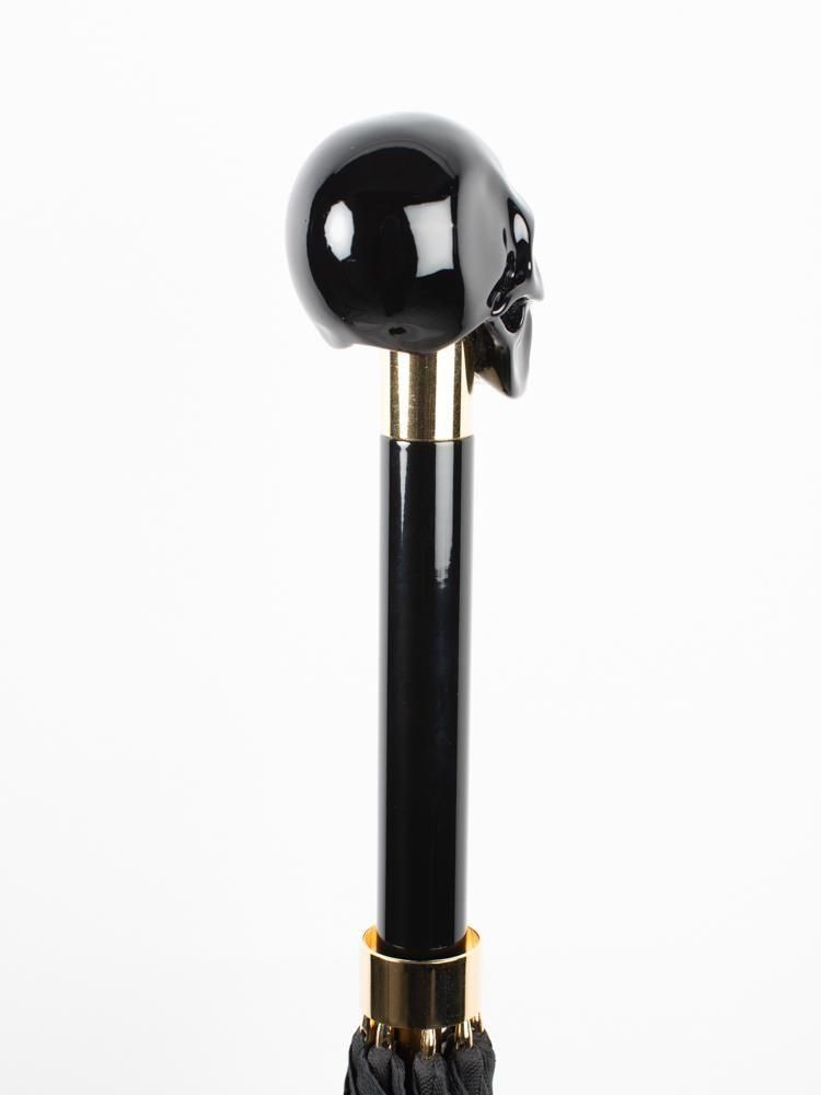BLACK OXFORD UMBRELLA WITH BLACK SKULL HANDLE