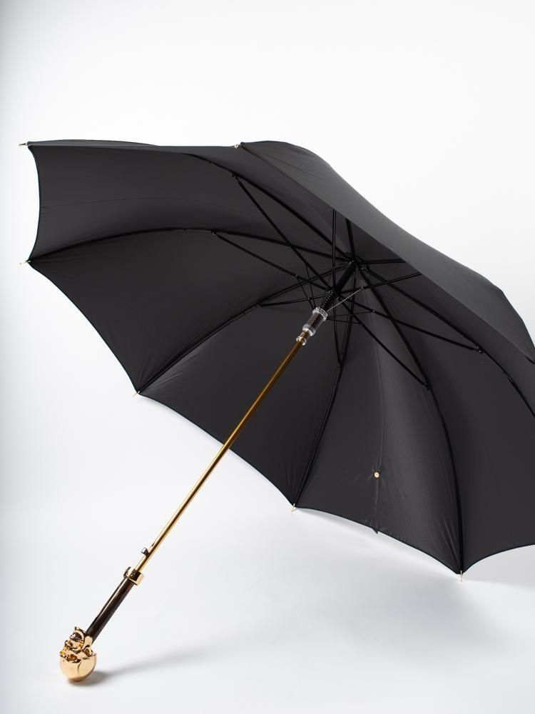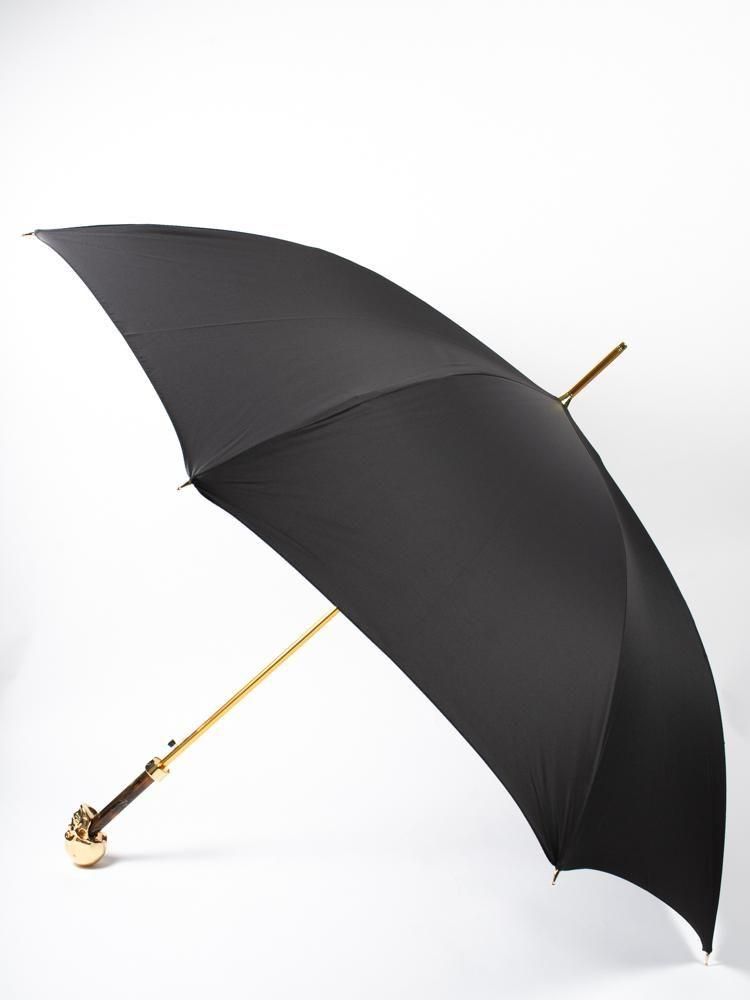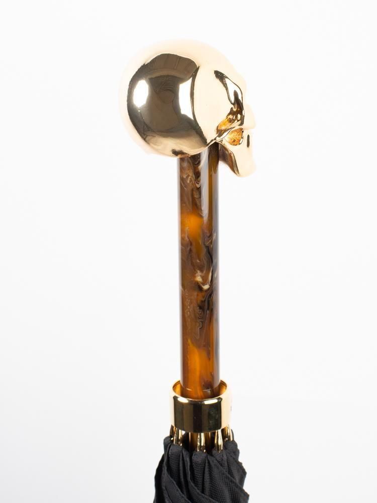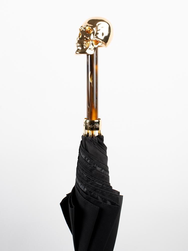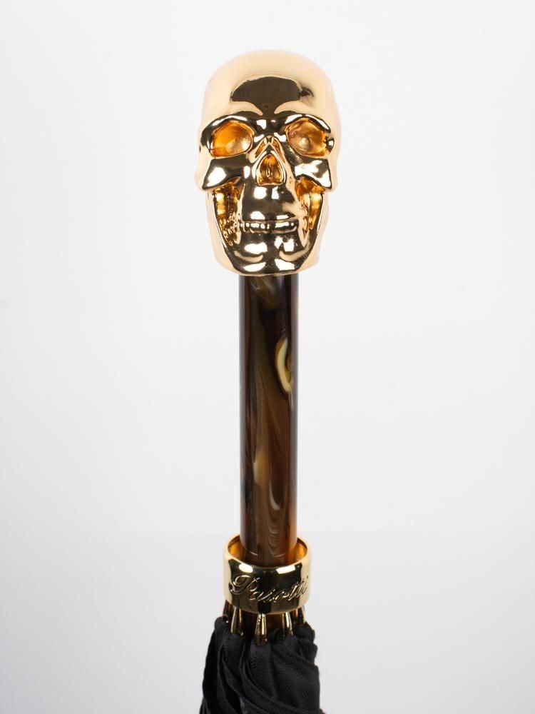 持ち手にゴールドのスカルがデザインされたPasotti(パソッティ)らしいデザインの傘です。