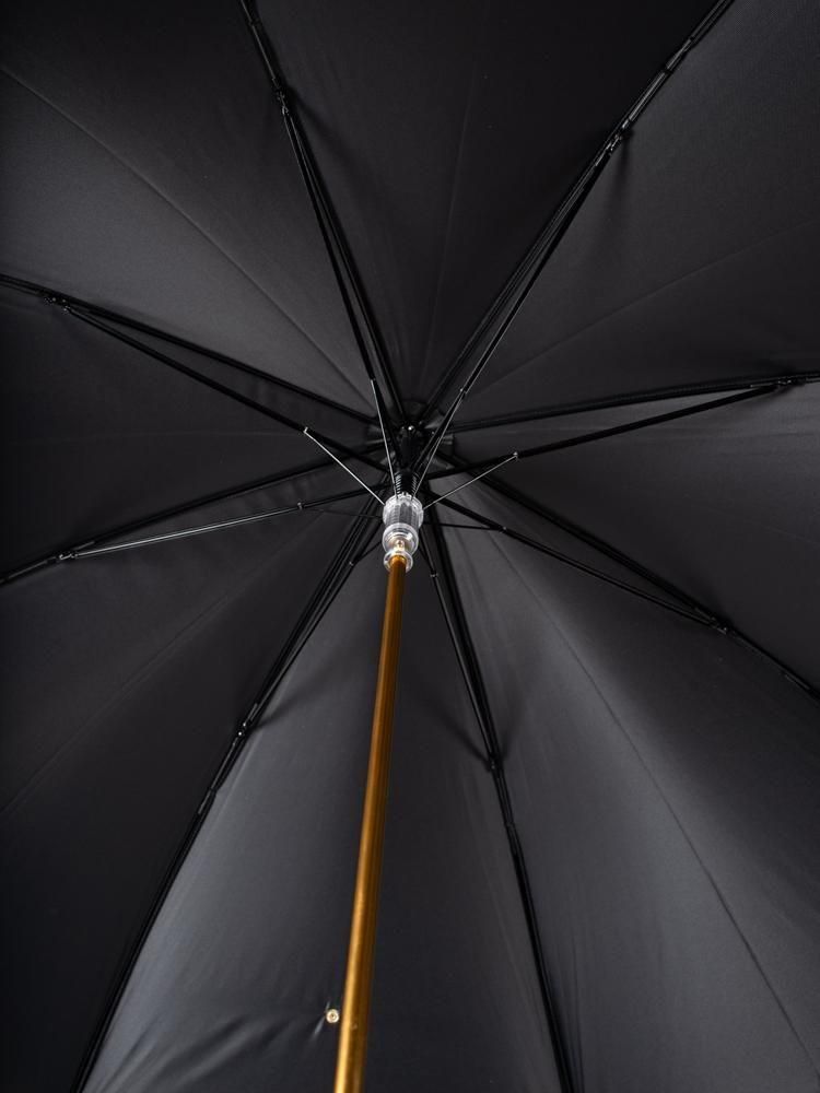 BLACK OXFORD UMBRELLA WITH GOLD SKULL AND BROWN HANDLE